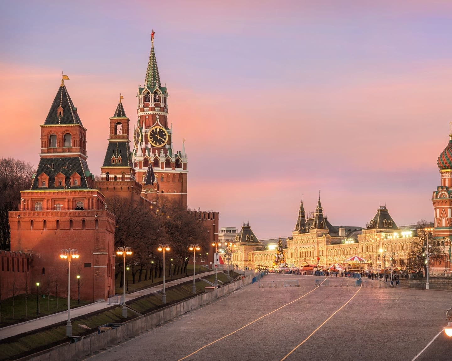 Spend the day at your own pace, beginning with a visit to Red Square, Moscow’s iconic heart, surrounded by historic landmarks and vibrant city life. Here, you can admire the colorful Saint Basil’s Cathedral, famous for its onion-shaped domes and intricate architecture, and take photos of the State Historical Museum. Continue your exploration to the Kremlin, the fortified complex that serves as the official residence of the President of Russia. Inside the Kremlin, guests can visit several museums, including the Armoury Chamber, which houses Russian royal treasures, coronation regalia, and historic weaponry. Depending on preference, visitors can also see Cathedrals of the Kremlin, such as the Assumption Cathedral and Archangel Cathedral, which showcase Russian religious art and architecture.